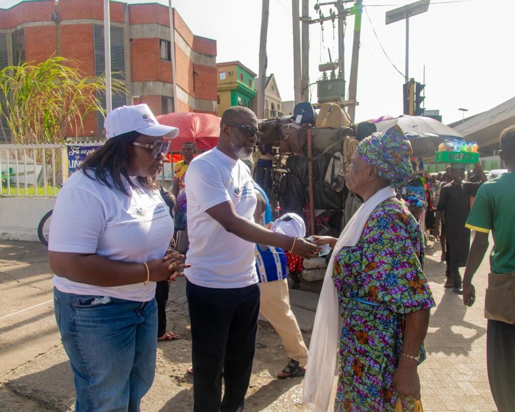 In addition to food packs and drinks, the President of the foundation, Hon. Victor T. Briggs and his amiable wife, the Vice President, Mrs. Amelda Briggs who led the Lagos team, extended goodwill by giving cash gifts to selected beneficiaries on the streets.